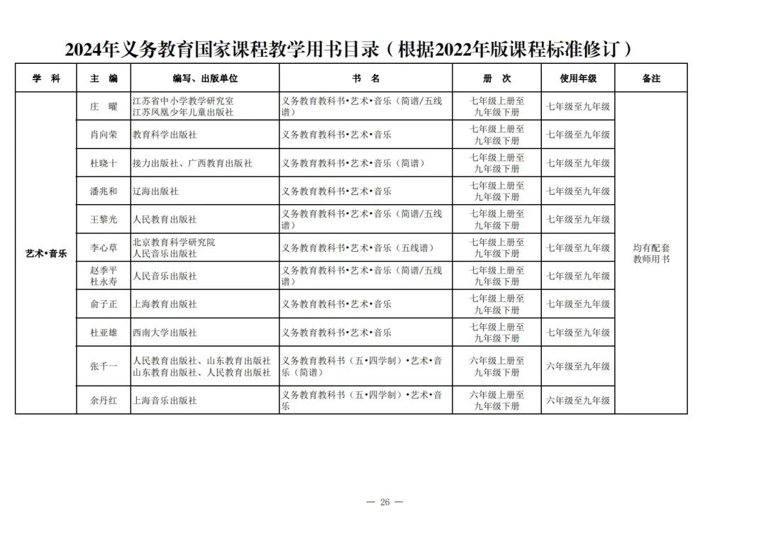教育部辦公廳關于印發(fā)《2024年義務教育國家課程教學用書目錄(根據(jù)2022年版課程標準修訂)》的通知