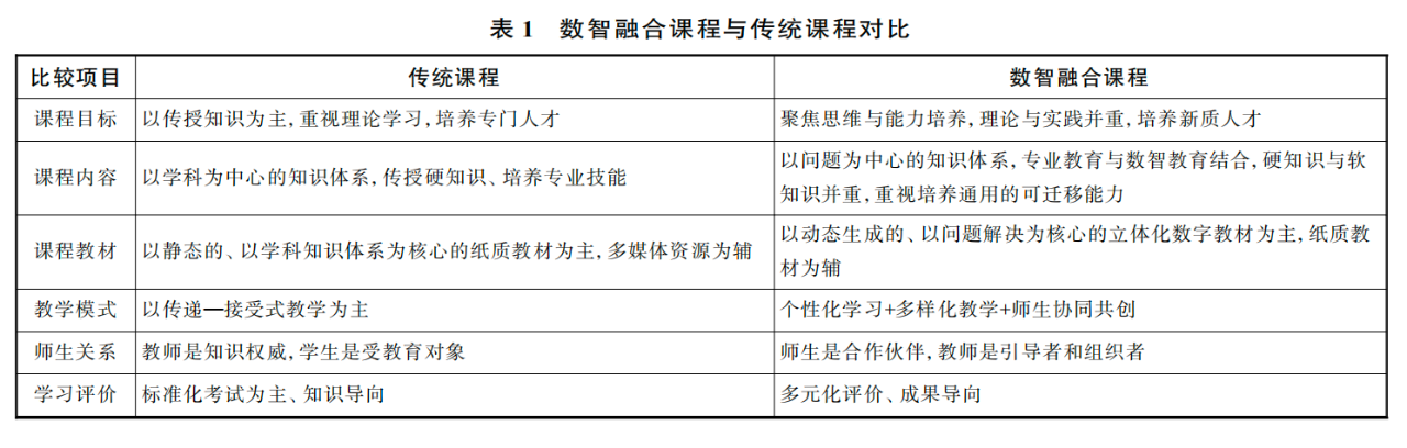 傳統(tǒng)課程側(cè)重于書本知識的系統(tǒng)傳授,遵循學(xué)科知識的內(nèi)在邏輯循序漸進(jìn)地組織教學(xué),且高度重視紙質(zhì)教材的建設(shè)。然而,當(dāng)前紙質(zhì)教材的更新速度已難以匹配快速迭代的知識涌現(xiàn),書本知識往往無法滿足現(xiàn)實世界的動態(tài)需求。鑒于此,數(shù)智融合課程應(yīng)積極響應(yīng)新質(zhì)教育的號召,重視新知識的學(xué)習(xí),新技能和新思維方式的培養(yǎng),圍繞實際問題重構(gòu)課程內(nèi)容。