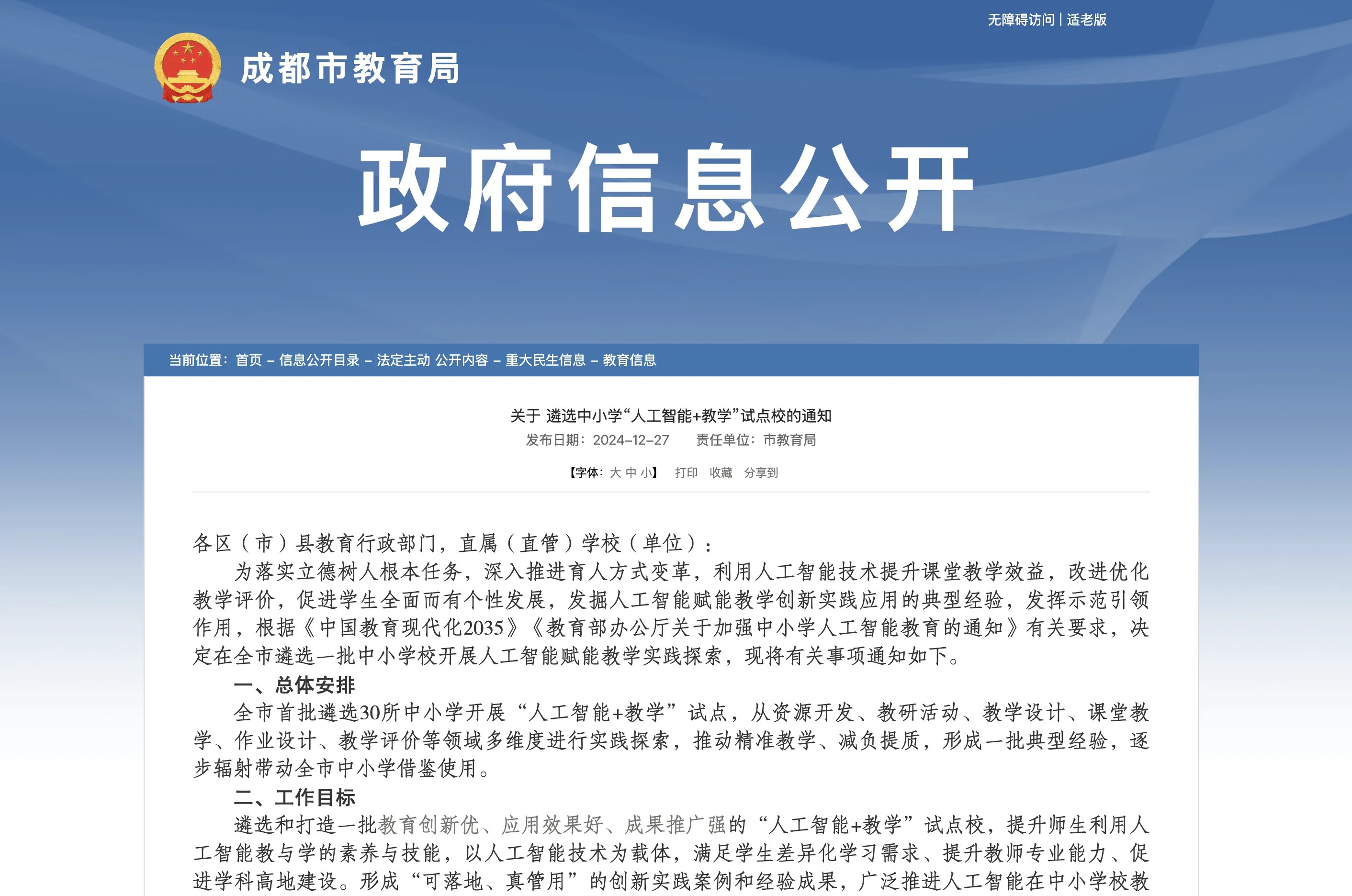 隨著人工智能技術的迅猛發(fā)展,教育領域也迎來了前所未有的變革。各地政府積極推動人工智能與教育深度融合,通過政策引導、技術支持和教育創(chuàng)新,力圖打造符合未來教育需求的新型教育模式。北京、上海和成都作為中國教育和科技創(chuàng)新的重要城市,在“人工智能+教育”方面的政策部署各具特色。通過對這三地政策的深入對比分析,不僅能夠幫助我們更好地理解各地在智能教育改革中的思路和行動,還能夠為全國教育政策的優(yōu)化與實施提供有益的參考。快跟著中小學藝術素養(yǎng)評測系統的小編一起來看看具體內容吧~