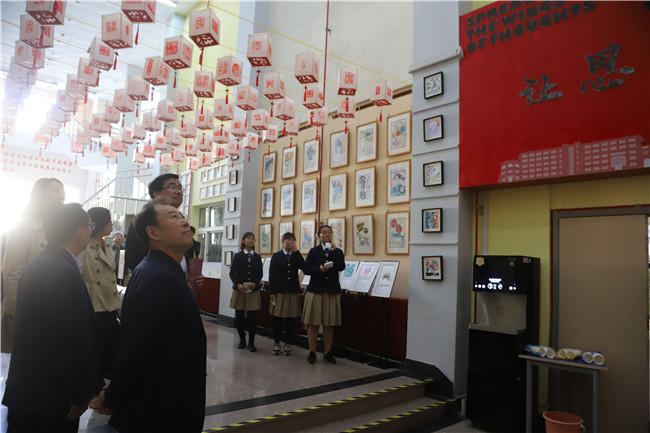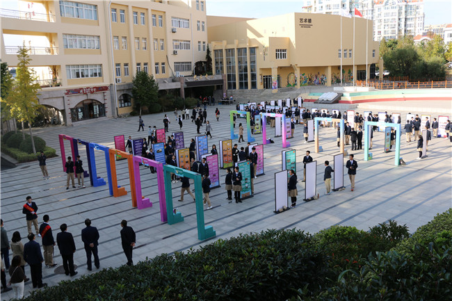隨后各位領(lǐng)導(dǎo)來(lái)到學(xué)校禮堂的外廊欣賞了青島二中同學(xué)的藝術(shù)作品展。人物肖像、特色篆刻等每一件藝術(shù)作品都是同學(xué)們藝術(shù)素養(yǎng)提升的象征,在青島二中的三年高中生活中,每一位同學(xué)都能通過(guò)學(xué)校搭建的平臺(tái)提升自己的一項(xiàng)藝術(shù)才能,實(shí)現(xiàn)個(gè)人的終生發(fā)展。