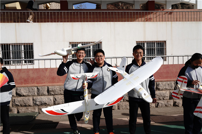 在學(xué)生代表們的引導(dǎo)下,各位市領(lǐng)導(dǎo)和青島二中校領(lǐng)導(dǎo)首先來(lái)到了青島二中田徑場(chǎng),航模隊(duì)的成員們正在現(xiàn)場(chǎng)操作,展示各類航模比賽飛行的場(chǎng)景。青島二中航空模型系列活動(dòng)以課程為核心、以項(xiàng)目為引領(lǐng),培養(yǎng)學(xué)生優(yōu)勢(shì)智能,支持學(xué)生深度學(xué)習(xí)。學(xué)生通過(guò)參與理論學(xué)習(xí)、模型制作、計(jì)算機(jī)模擬訓(xùn)練、外場(chǎng)遙控飛行,參與航空主題的課題研究,參加各級(jí)各類集訓(xùn)和比賽的全過(guò)程以提升自身的科技素養(yǎng)與創(chuàng)新能力。青島二中針對(duì)高一MT團(tuán)隊(duì)開(kāi)設(shè)了具有航空特色的綜合實(shí)踐課程,在初級(jí)課程的基礎(chǔ)上選拔優(yōu)秀的學(xué)生,組成航模隊(duì),開(kāi)展飛行訓(xùn)練。同時(shí)為了培養(yǎng)學(xué)生的創(chuàng)新能力和科技素養(yǎng),支持學(xué)生的優(yōu)勢(shì)智能培養(yǎng)與深度學(xué)習(xí),青島二中還舉辦了眾多創(chuàng)新實(shí)踐活動(dòng),培養(yǎng)學(xué)生的深入研究及創(chuàng)新能力。
