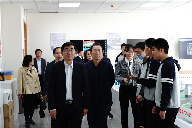 緊接著,領(lǐng)導(dǎo)們漫步在二中校園,進(jìn)入了青島二中科創(chuàng)中心參觀。青島二中目前已建成創(chuàng)新實(shí)驗(yàn)室12個(gè),在建創(chuàng)新實(shí)驗(yàn)室11個(gè),創(chuàng)新課程覆蓋人數(shù)達(dá)800人。同時(shí),青島二中還依托創(chuàng)新實(shí)驗(yàn)室、創(chuàng)新課程,聯(lián)合中國(guó)海洋大學(xué)、中科大海洋研究所等17個(gè)基地開(kāi)展學(xué)術(shù)素養(yǎng)提升計(jì)劃,聘任導(dǎo)師200余人,參與人數(shù)達(dá)3200人。二中通過(guò)創(chuàng)新人才培養(yǎng)體系,全面引導(dǎo)學(xué)生參與一項(xiàng)科技創(chuàng)新活動(dòng),通過(guò)課程、實(shí)驗(yàn)室、課題、比賽等平臺(tái),使每位學(xué)生均能實(shí)現(xiàn)“人人有課題,人人有項(xiàng)目,人人有成果”。