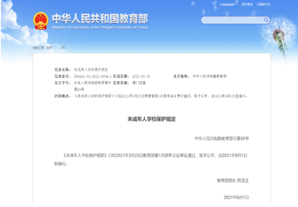 《未成年人學校保護規(guī)定》