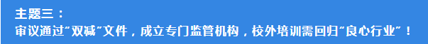 1月7日,陳寶生部長在全國教育工作會議上采用非常嚴厲的措辭表示:“2021年,要大力度治理整頓校外培訓機構。這件事非辦不可,必須主動作為!”3月5日,兩會召開,規(guī)范治理校外培訓成為兩會提案熱點中的熱點,多位代表提出建議:統(tǒng)籌各方力量,系統(tǒng)治理整頓校外培訓機構,減輕學生和家長負擔。5月21日,中央全面深化改革委員會十九次會議審議通過了《關于進一步減輕義務教育階段學生作業(yè)負擔和校外培訓負擔的意見》,會議強調,要全面規(guī)范管理校外培訓機構,堅持從嚴治理,不能讓良心的行業(yè)變成逐利的產業(yè)。6月1日,國家市場監(jiān)督管理總局召開新聞發(fā)布會,介紹市場監(jiān)督部門對15家校外培訓機構分別予以頂格罰款,共計3650萬元。6月15日,教育部召開啟動會,宣布成立“校外教育培訓監(jiān)管司”,傳遞出徹底解決校外培訓監(jiān)管難的決心。各類信息的傳遞,以及各地出臺的非常嚴厲的治理舉措,不僅引起全社會的高度關注,更引起了教培行業(yè)的巨大震動。