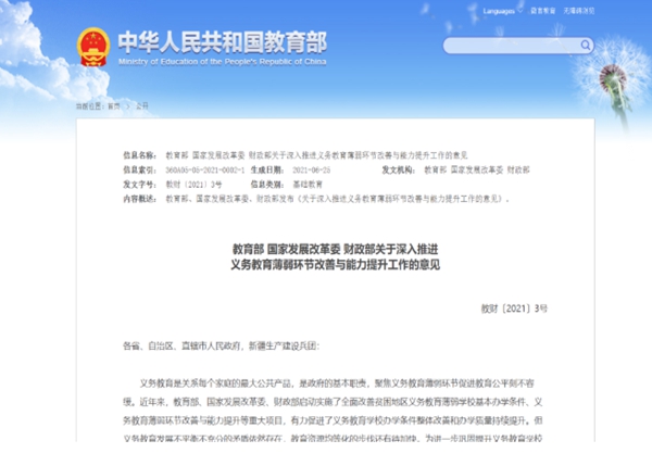 7月2日,教育部等三部門印發(fā)了《關于深入推進義務教育薄弱環(huán)節(jié)改善與能力提升工作的意見》,強調要突出加強農村義務教育薄弱環(huán)節(jié)這個事關全局的重點?!兑庖姟愤€布置了3項重點任務,要求持續(xù)改善農村基本辦學條件,改善學校寄宿條件,重點滿足偏遠地區(qū)學生和留守兒童的寄宿需求,根據需要建設心理咨詢室、圖書室等功能教室,支持鄉(xiāng)村學校因地制宜開好音體美等課程,保障教育教學需要。在提升學校辦學能力方面,要求各地要改善網絡設施,推動信息技術與教育教學深度融合,提升信息技術應用能力;支持學校網絡設施設備以及專遞課堂、名師課堂和名校網絡課堂建設,更加注重支持提高農村義務教育教師教學水平等等,體現(xiàn)了對農村學校教育質量提升的高度重視。