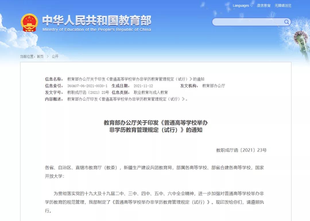 為進一步加強對高校舉辦非學歷教育的規(guī)范管理,堅決規(guī)范高校非學歷教育的辦學行為,教育部組織有關專家開展深入調(diào)研,廣泛聽取各方面意見建議,對高校非學歷教育領域存在的突出問題和風險點進行認真梳理,研究提出規(guī)范管理的政策建議。在此基礎上,教育部研究制定了《規(guī)定》。