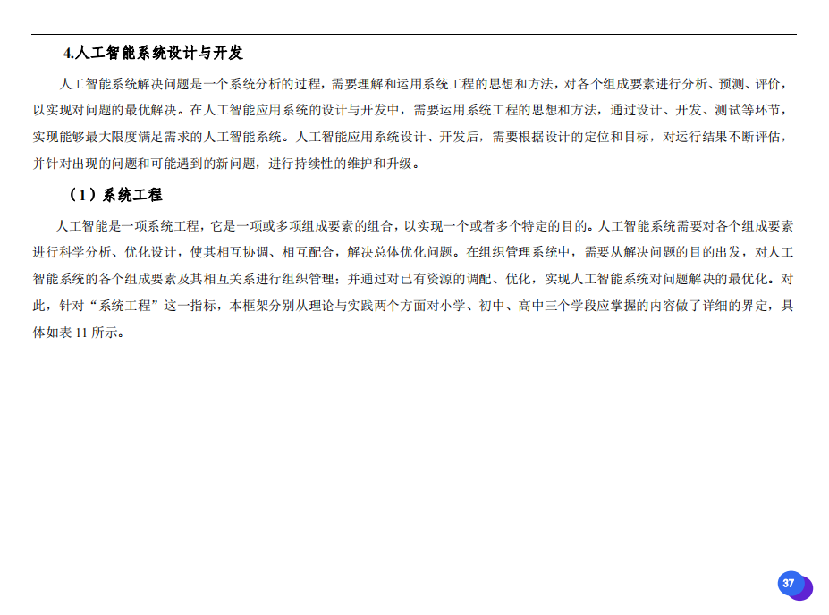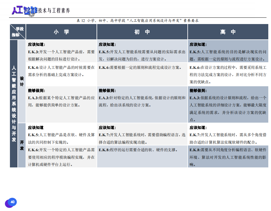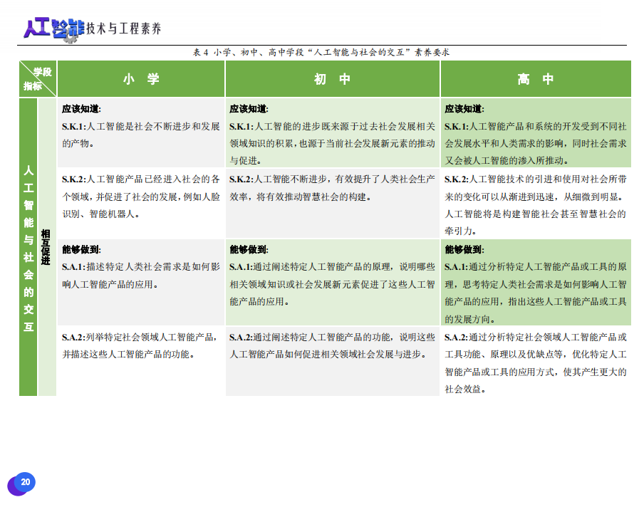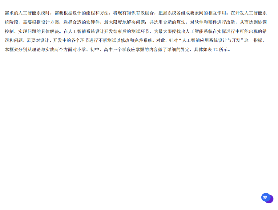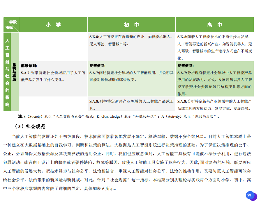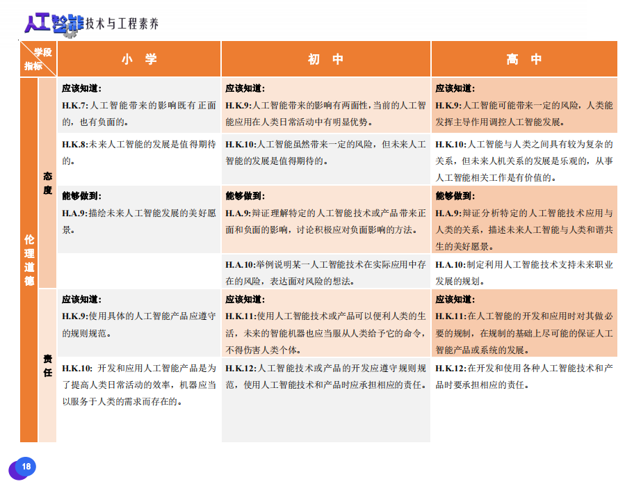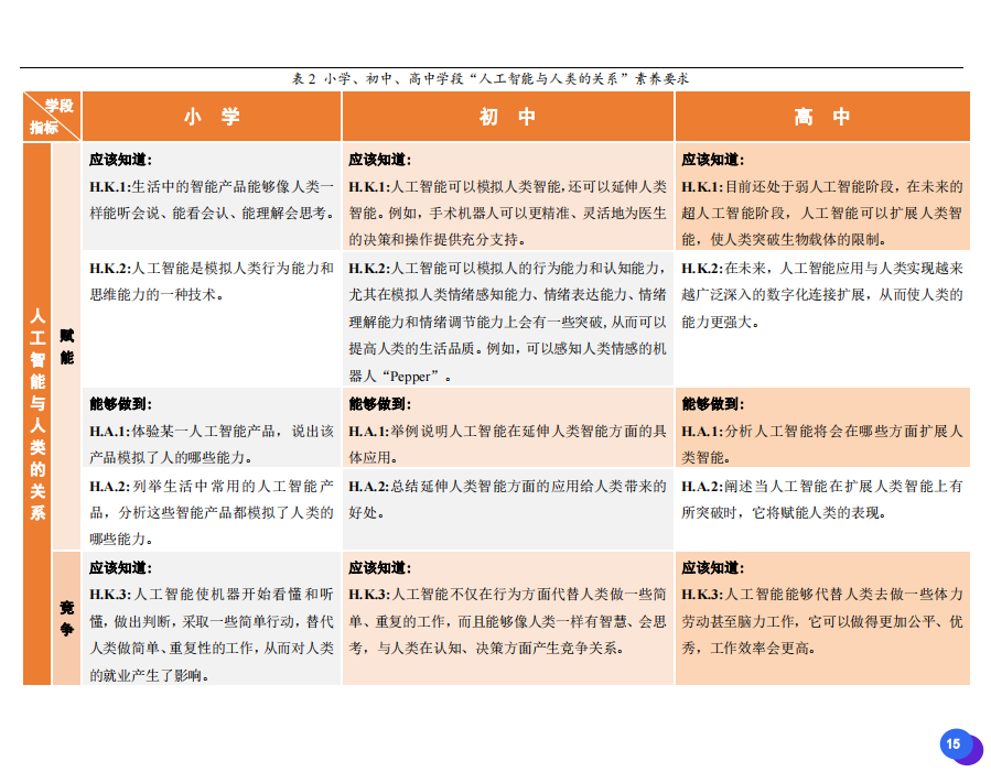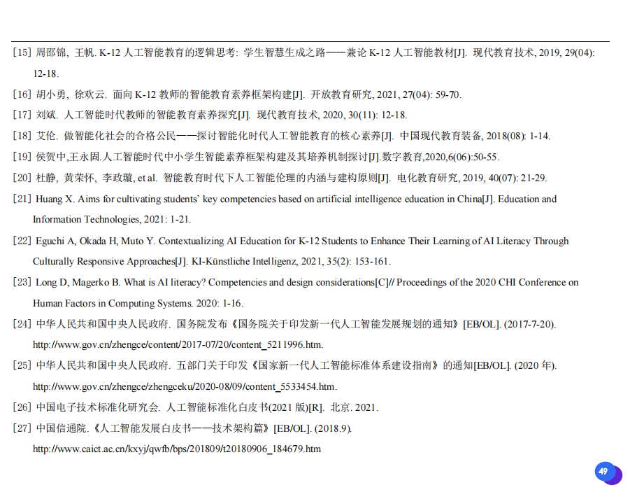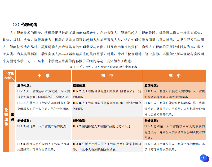 此次發(fā)布的《素養(yǎng)框架》包含人工智能與人類、人工智能與社會(huì)、人工智能與技術(shù)、人工智能系統(tǒng)設(shè)計(jì)與開發(fā)四個(gè)領(lǐng)域,可為中小學(xué)普及人工智能教育的標(biāo)準(zhǔn)制定、教材編寫、課程開設(shè)、素養(yǎng)評價(jià)提供重要參考,將推動(dòng)人工智能教育從知識教育向素養(yǎng)教育的轉(zhuǎn)變?!端仞B(yǎng)框架》發(fā)布后,將不斷吸收有關(guān)意見和建議,逐步完善和更新。