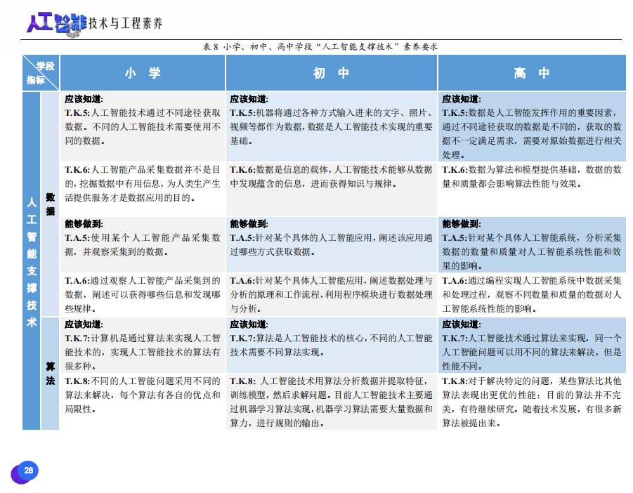 國務(wù)院《新一代人工智能發(fā)展規(guī)劃》發(fā)布以來,我國中小學(xué)人工智能教育開始進(jìn)入快速發(fā)展軌道。據(jù)統(tǒng)計(jì),目前已有上千所中小學(xué)開設(shè)人工智能課程。為了保證人工智能教育高質(zhì)量發(fā)展,中央電化教育館組織高校相關(guān)領(lǐng)域教授、一線教研專家及產(chǎn)業(yè)界專家等共同研究制定了《中小學(xué)人工智能技術(shù)與工程素養(yǎng)框架》,并于11月30日正式發(fā)布。具體情況快跟著信息技術(shù)考試的小編看一下吧~
