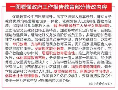 此外,《報告》在修改中還補充了“專門教育”“優(yōu)化高等教育布局”“發(fā)展在線教育”“完善終身學(xué)習(xí)體系”等內(nèi)容。