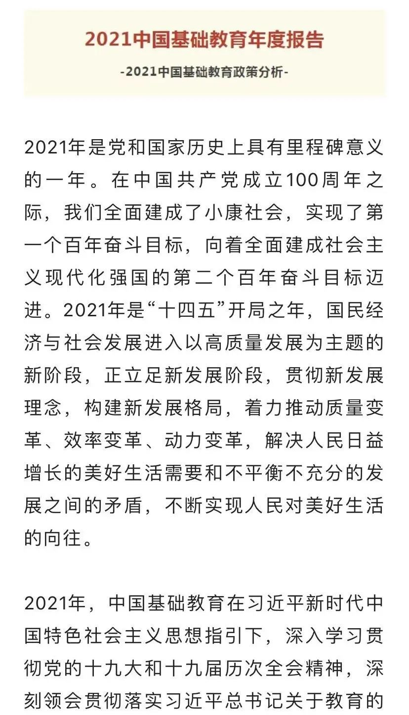 中國(guó)教育報(bào)刊社發(fā)布的《2021中國(guó)基礎(chǔ)教育年度報(bào)告》聚焦高質(zhì)量發(fā)展主題,關(guān)注一年來(lái)基礎(chǔ)教育的重大決策部署進(jìn)展和成果、重要研究前沿和熱點(diǎn)、重要實(shí)踐探索經(jīng)驗(yàn)和案例。具體內(nèi)容快跟著信息技術(shù)考試系統(tǒng)的小編來(lái)看看吧~
