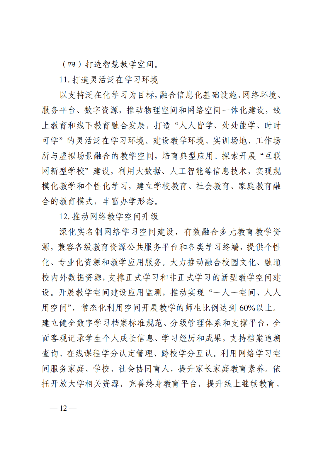(四)打造智慧教學(xué)空間:1、打造靈活泛在學(xué)習(xí)環(huán)境;2、推動(dòng)網(wǎng)絡(luò)教學(xué)空間升級(jí);3、逐步普及新型學(xué)習(xí)終端