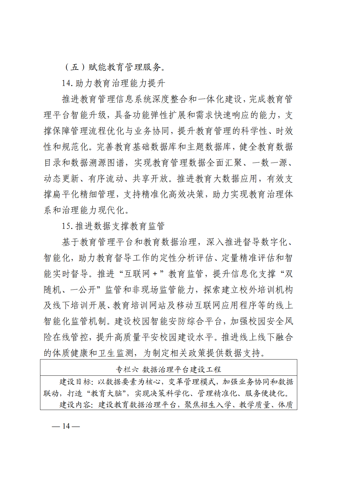 (五)賦能教育管理服務(wù):1、助力教育治理能力提升;2、推進(jìn)數(shù)據(jù)支撐教育監(jiān)管;3、完善網(wǎng)上教育政務(wù)服務(wù)