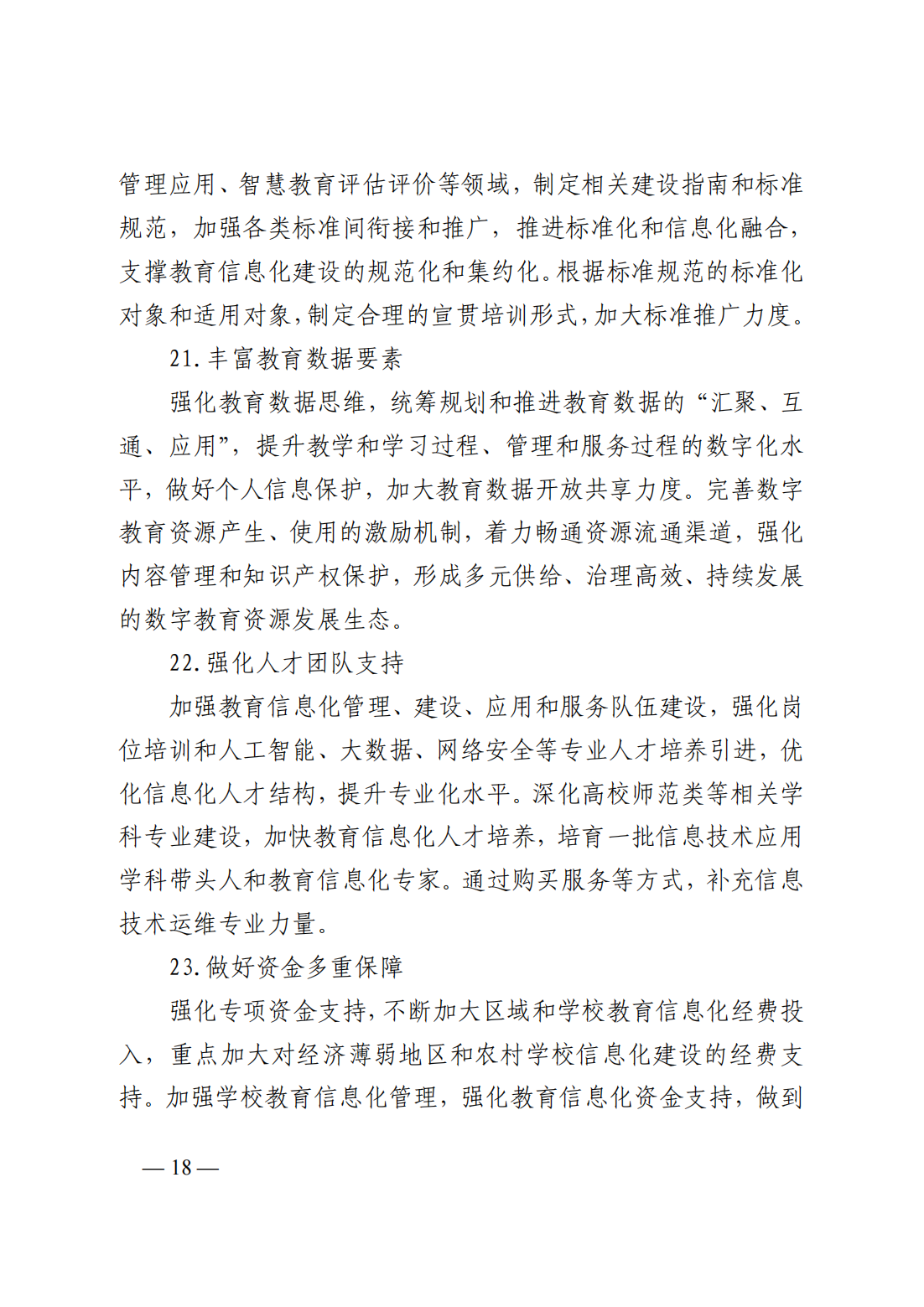 (七)做好要素集聚應(yīng)用:1、建立健全標(biāo)準(zhǔn)體系;2、豐富教育數(shù)據(jù)要素;3、強(qiáng)化人才團(tuán)隊(duì)支持;4、做好資金多重保障;5、加快技術(shù)應(yīng)用研究