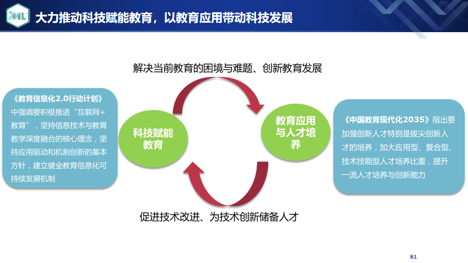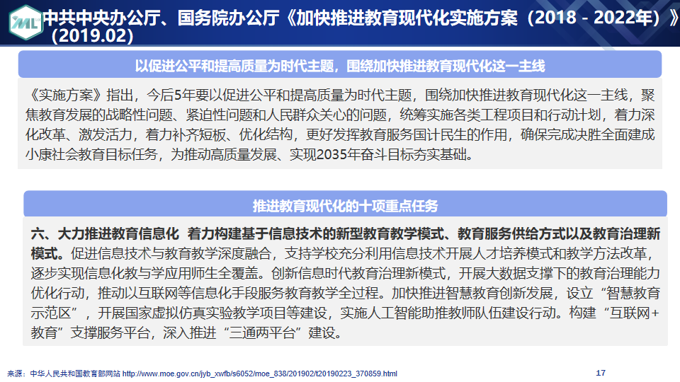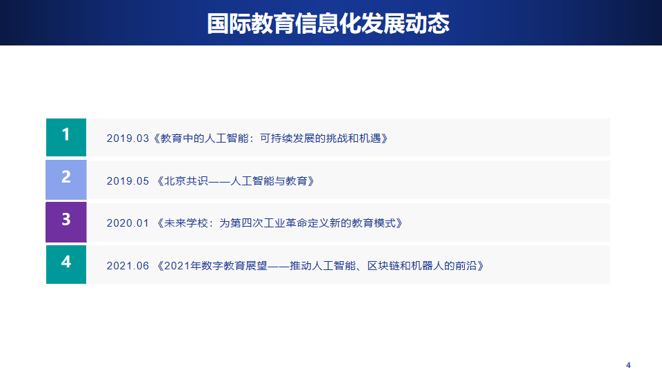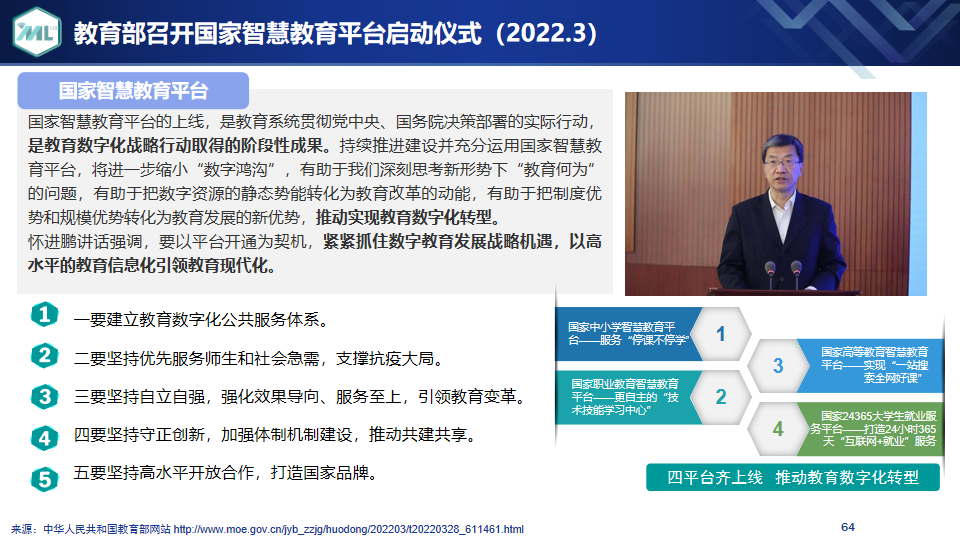 報告指出,國家教育信息化發(fā)展的幾個鮮明方向:一是更加強調(diào)技術(shù)促進教育的普惠、公平與全納;二是阻止教育服務的資本化、市場化的發(fā)展傾向;三是強調(diào)教育的目的是為了實現(xiàn)學生的個性化學習以實現(xiàn)學生的全面發(fā)展;四是發(fā)揮信息技術(shù)的創(chuàng)新潛能突破教育關(guān)鍵環(huán)節(jié)的難題與困境;五是強調(diào)信息技術(shù)對教育業(yè)態(tài)與模式的創(chuàng)新;六是大力推動科技賦能教育,以教育應用帶動科技發(fā)展。