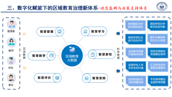 4、數(shù)字化要為實(shí)時(shí)監(jiān)測、預(yù)警和優(yōu)化教育教學(xué)賦能,要為建立新治理體系賦能。
