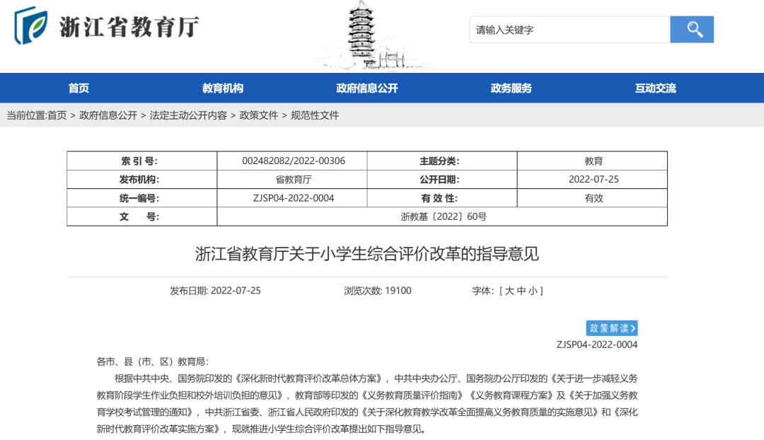 2022年1月,教育部印發(fā)《普通高中學校辦學質量評價指南》。在學生發(fā)展方面,包括品德發(fā)展、學業(yè)發(fā)展、身心健康、藝術素養(yǎng)、勞動實踐等5項關鍵指標,旨在突出五育并舉、全面發(fā)展,強調重素質、重能力要求。2022年7月,全國首個針對小學學生評價的改革文件《浙江省教育廳關于小學生綜合評價改革的指導意見》發(fā)布,該文件明確了小學生綜合評價內容,建構了“五育融合”的評價體系。