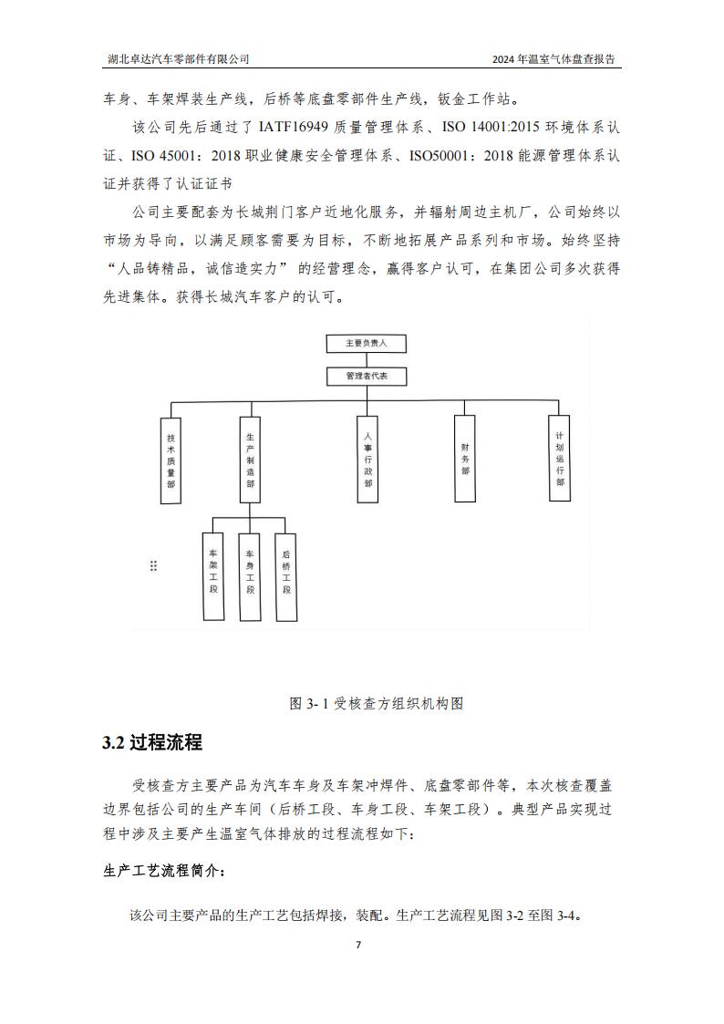 湖北卓達汽車零部件有限公司溫室氣體排放盤查報告