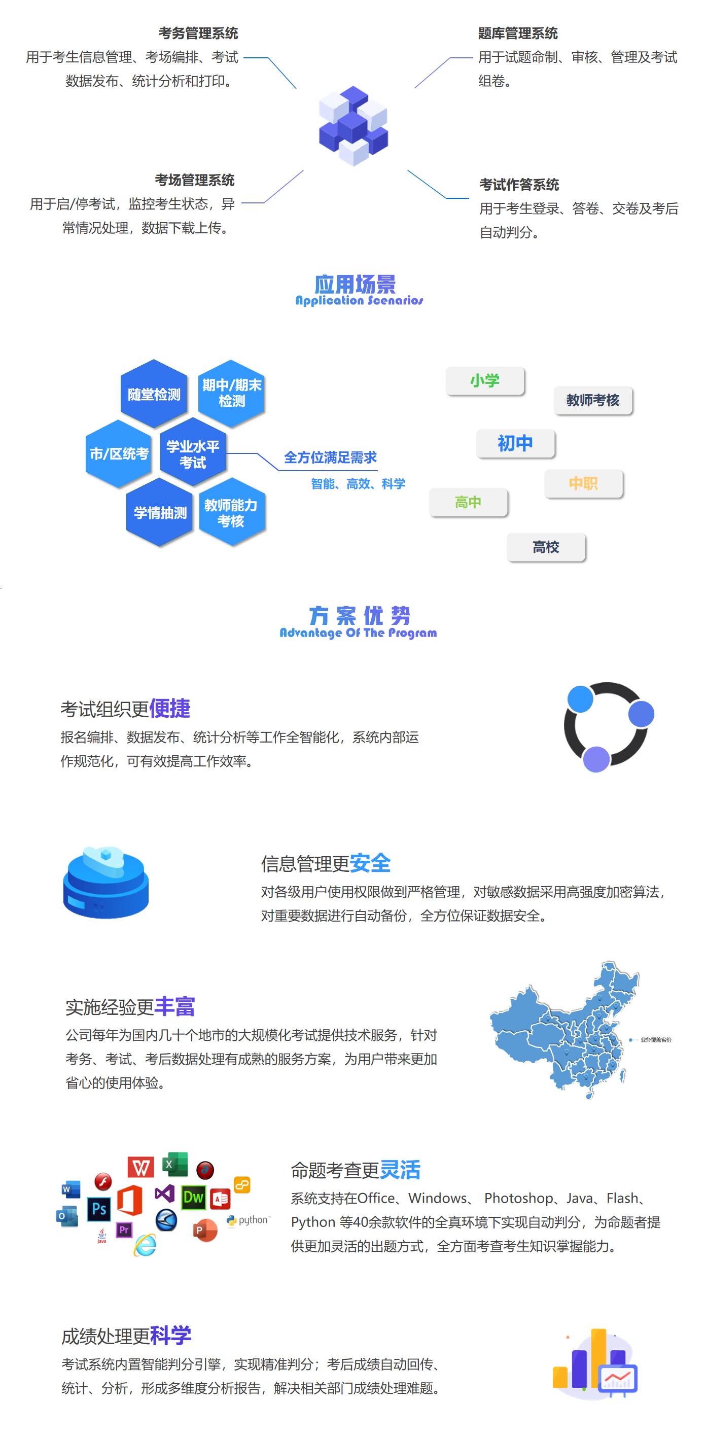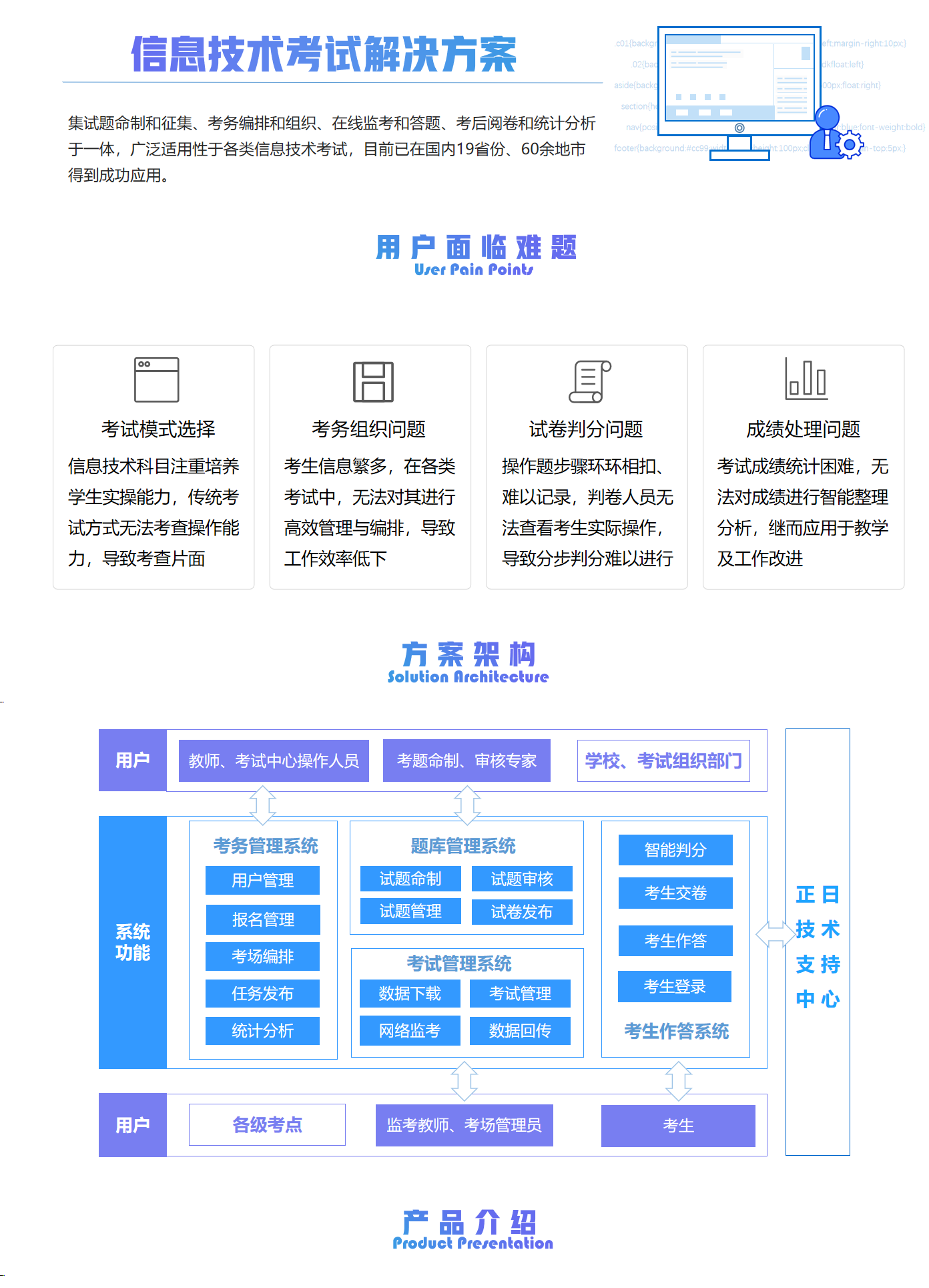 正日信息技術(shù)考試系統(tǒng),是針對中小學(xué)信息技術(shù)考試研發(fā)的全智能化機(jī)考平臺,集試題命制和征集、考務(wù)編排和組織、在線監(jiān)考和答題、考后閱卷和統(tǒng)計分析于一體,以用戶需求為主導(dǎo),為用戶提供信息技術(shù)上機(jī)考試系統(tǒng)。