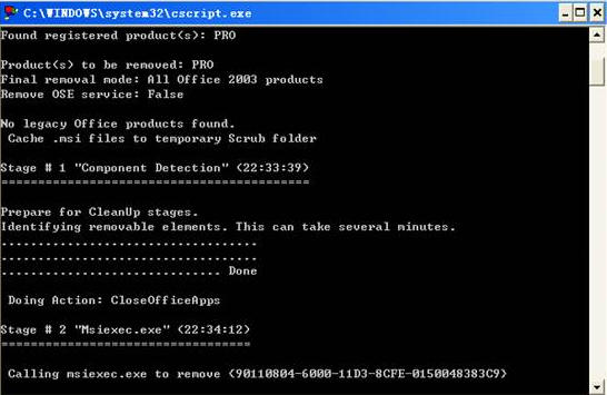⑥等待程序運行完成后,界面會自動關閉,表示office2003卸載成功。