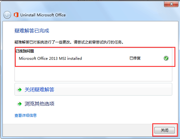 ⑦當出現(xiàn)下圖所示界面,表示卸載完成,單擊“關閉”即可