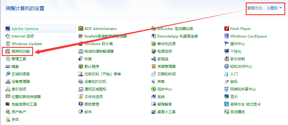 ③打開“小圖標(biāo)”模式下的“程序和功能”.